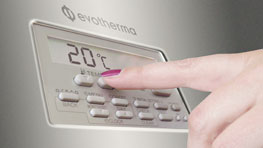 Bei evotherma sind Aussen- und Inneneinheit über eine Kältemittelleitung verbunden. Die Ausseneinheit mit Wärmepumpe entzieht der Aussenluft noch bei -30°C Energie und wandelt diese in Wärme um. Invertergeregelt wird nur die tatsächlich benötigte Leistung